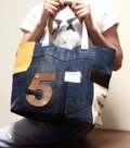 最新作☆デニム&倉敷8号帆布トートバッグ Mサイズ five白革#03