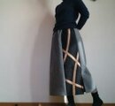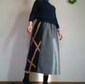 毛混グレーと暖かい異素材の生地を縫い合わせたロングスカートを作りました。