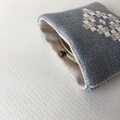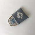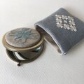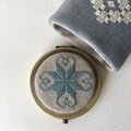 生成りのリネン生地に刺繍したコンパクトミラーと