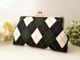 ◆【売りきれ】【再販2】正統派アーガイルのがま口ポーチグリーン*チェック*イギリス*旅行やプレゼントにも◆