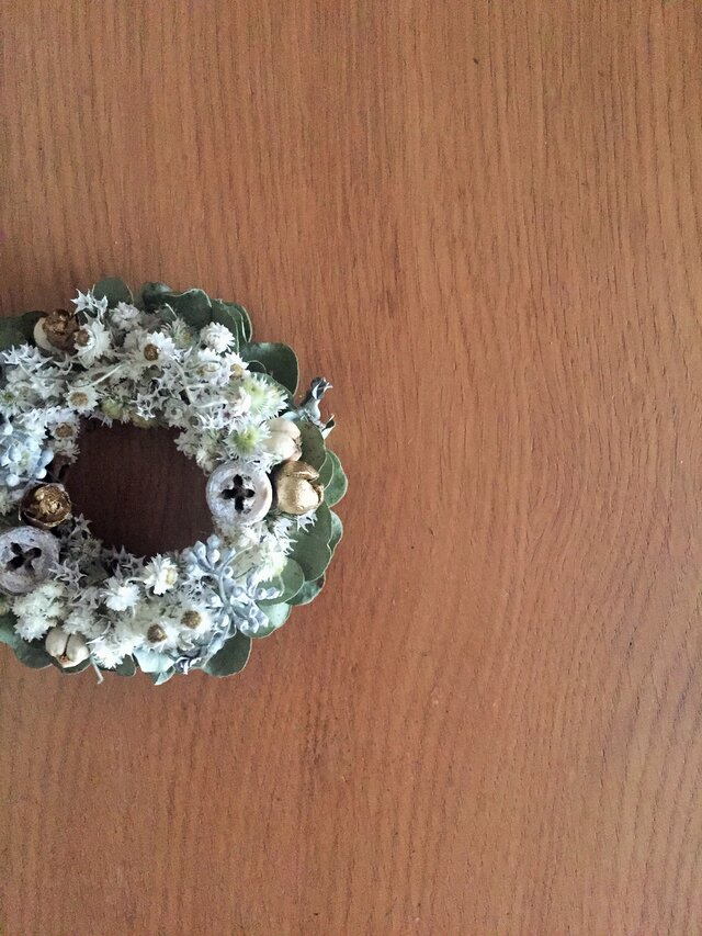 素材は、ハハコグサ、丸葉ユーカリ、タタリカ、木の実他。