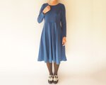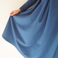 ・寒い季節に着たくなる、しっかりと厚みのある生地を選びました。ハリもあるので、立体的なシルエットを作ってくれます。お色は、グレーがかった青色。一般的なロイヤルブルーのイメージよりもやわらかい色合いです。