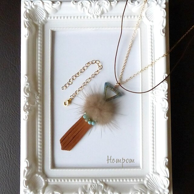 2way☆エスニックファーとタッセルのネックレス ホムポム