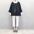 両サイドスリットで八分くらいの広がりお袖の丸首ジャケットです。