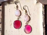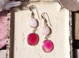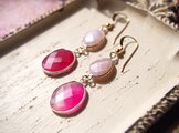 表情の違う2つのアゲートを組み合わせたピンク色の可愛いピアス。