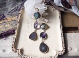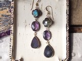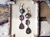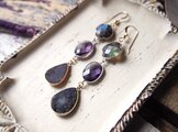 素材:ラブラドライト・アメジスト・ドゥルージークォーツ・シルバー(石枠)・真鍮・K14ゴールドフィルド(ピアス金具)