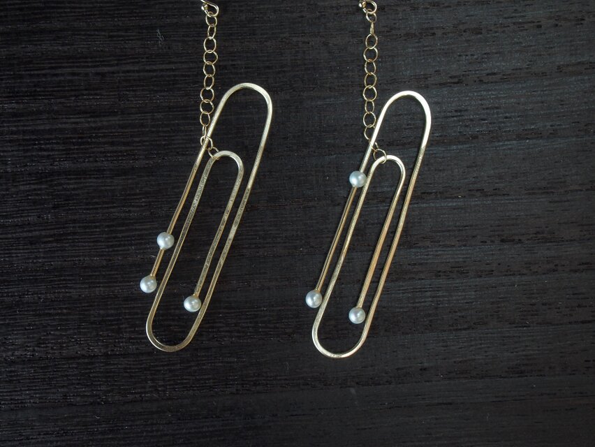 クリップは文房具として有名ですが、クリップの完成されたシンプルな美しさが気に入っていたので、思い切って耳飾りに仕立ててみました。