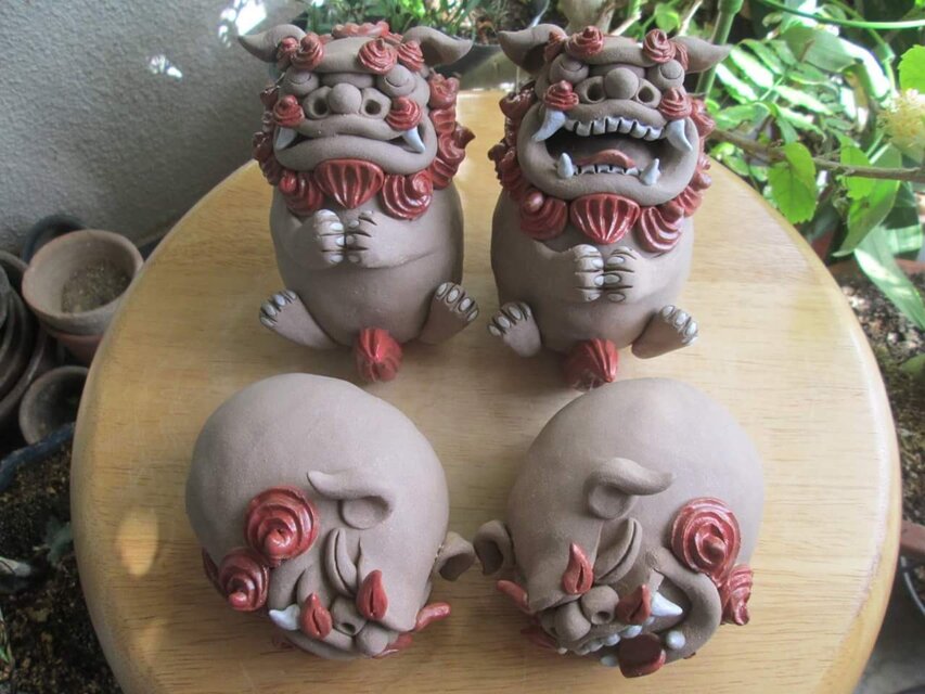 手捻りで製作したお願いシーサーとおねんねシーサーです(*^-^*)