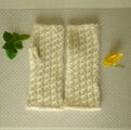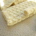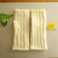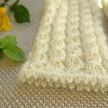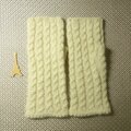 オフホワイトのアルパカ糸を使って、縄編みでグルリと編みました。