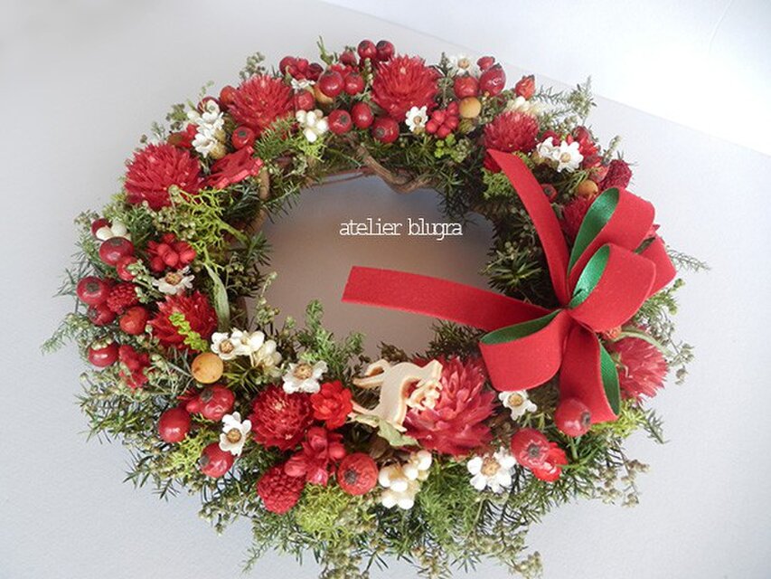 しっとりした大人色のリースで、とても素敵です。 毎回、素敵な作品をありがとうございます。