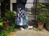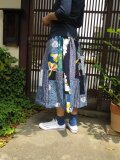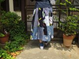 藍色浴衣deリメイクスカート☆華やかな菖蒲や笹♪76cm丈