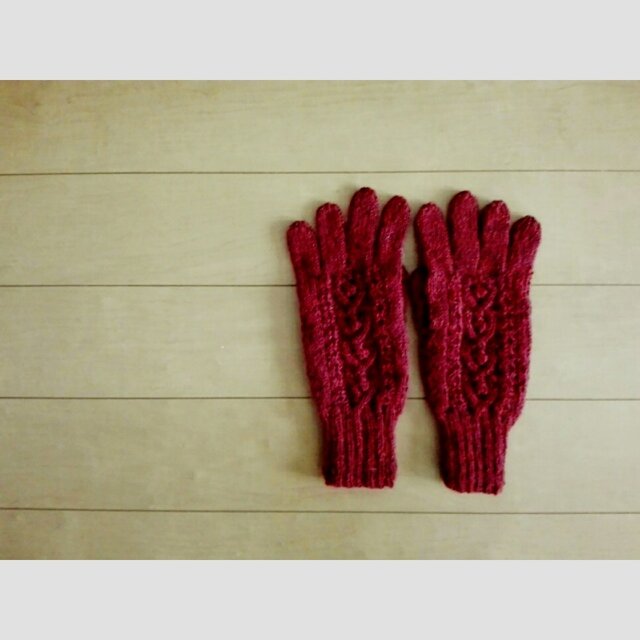 ダークレッドの5本指手袋です。
