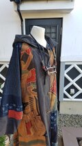着物リメイク 手作り 旗(柿渋) かすり 縞など木綿を合わせた コート
