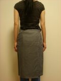 ベリーの生地の色違いでパープルグレーのエプロンを作成しました。少しパープルがかったきれいなグレーです。グレーなので、どんなお洋服にも合わせやすいです。生地は中厚地でタンブラーウォッシュ加工されており、とてもやわらかく気持ちがいいです。