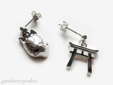 狐面と鳥居の左右異なるモチーフのピアスです。