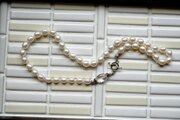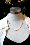 長さ8mm程度の美しいライス型パールをシルク糸で結びながらつなげていったサイズのネックレスです。