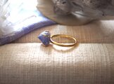 夕暮れの空にプリズムが輝くような、しっとりとしたブルーが美しいタンザナイト。