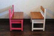 ♪かわいいパタパタミニベンチ♪ローズピンク&オークカラー