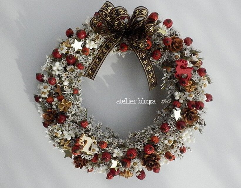 しっとりした大人色のリースで、とても素敵です。 毎回、素敵な作品をありがとうございます。