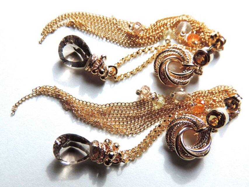 ~ K14GFライトスモーキークォーツ&マルチカラーストーンピアス ~