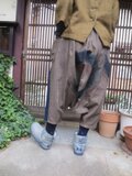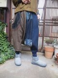 おしやれな大人のサルエルパンツ☆手描き自然染めに古布絣パッチして♪藍染好きさんにも