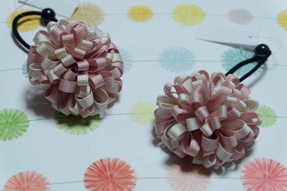 クラシックピンク&オフホワイトのフラワーゴムです。