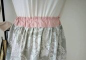 裾にはインドのお花のレースを縫い付けて、ウエスト部分もバランスにこだわったピンクです。