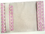 生地の色は、地の色が生成り、ウサギの色がピンク、葉の色がライトグリーン、つたの色がライトグレーです。