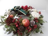 ユーカリをベースにクリスカラーに仕上げたリースです。フェイクのりんごを入れてみました。