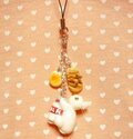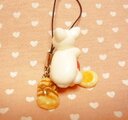 にゃんこのしっぽ○ミルクとパンのストラップ○白猫○ミニチュア