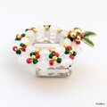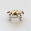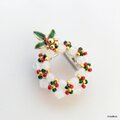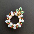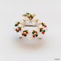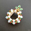 ホワイト(乳白色)の本体に赤・緑・ゴールドのシードビーズをアクセントにしたクリスマスリースの帯留め。