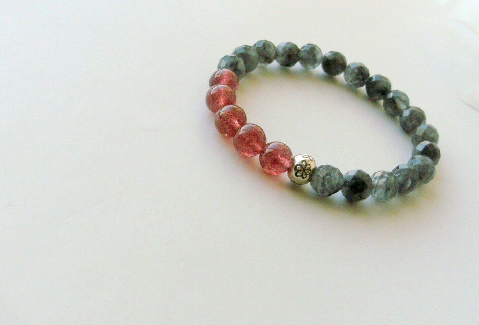 *ピンクエピドートインクォーツとクラウディクォーツのブレスレット