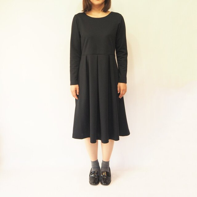 ┗ポケットやファスナー、ボタンなど余計な装飾を一切はぶき、シンプルを極めたワンピースです。その分小物やアクセサリー、着る人を引き立てます。