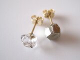 素材:パイライト/china 約7mm クォーツ/パキスタン産 約7mm ペア(両耳セット)です。[英名/Pyrite 和名/黄鉄鉱 FeS2][英名/quartz 和名/水晶]
