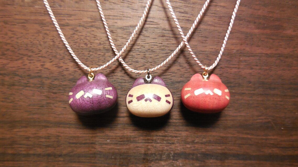 どの子も杢目が美しく、木の肌が滑らかで、触っているととても気持ちがよいです。ペンダントやブローチはとても軽いので着け心地がよく、ネコノカミさんたちもかわいらしくて、どの子もとても気に入っています。大切にさせていただきます。ありがとうございました。