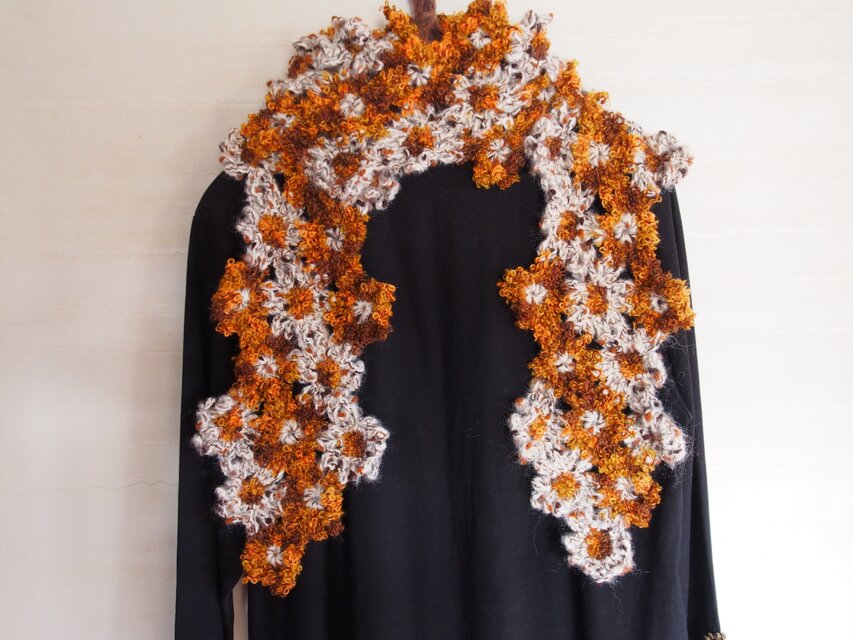 マーガレットモチーフマフラーの新作です。