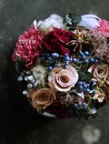 プリザーブドフラワーを丸いボックスに冬のイメージでアレンジしました。
