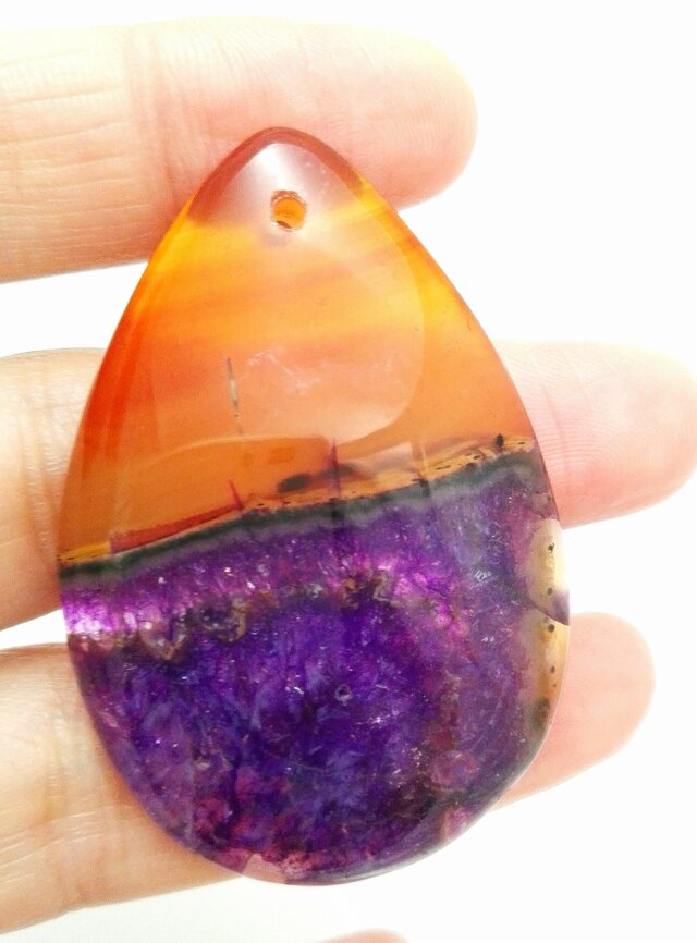 Druzy Geode Agate コニャックオレンジ&パープル ウォータードロップルース 52*35*7mm