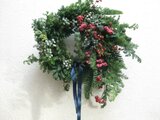 フレッシュなモミなどのエバーグリーンをベースに赤い実やジュニパーベリーなどをギュッとつめこんだクリスマスリースです。
