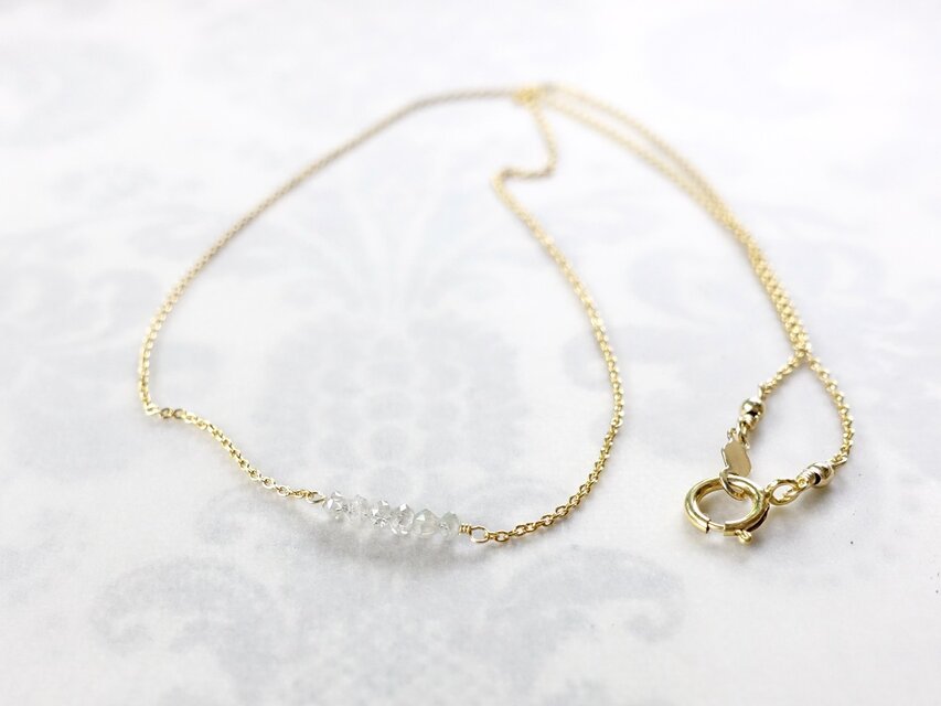 宝石質ダイヤモンドのボタンカットを繊細な極細チェーンにあわせてネックレスに仕立てました。