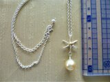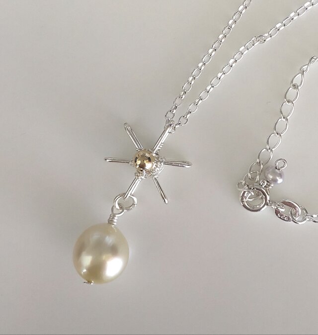 シルバーの星にライトゴールデンカラーの南洋白蝶パールを下げたペンダントです。