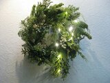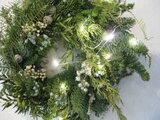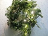マウンテンジュニパーやモミなどのエバーグリーンを冬の山のイメージで野趣たっぷりにアレンジしました。