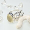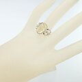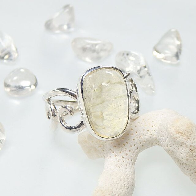 淡いイエローカラーのリビアングラスを、唐草デザインのリングに仕上げました。
