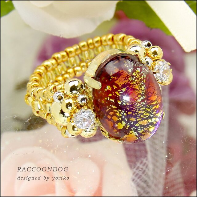 ビーズ,リング,コスチュームジュエリー,ビーズアクセサリー,ビーズアクセ,シラーオパール,ビーズリング,シラー,アクセサリー,ヴィンテージ,ジルコニア,ゴールド,クリスタル