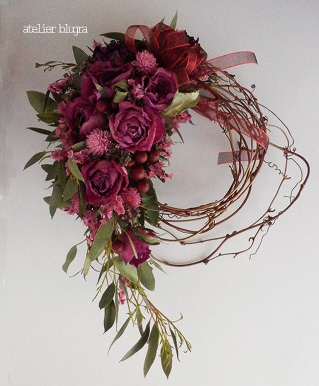 ボルドーカラーのシックなバラで、今年のクリスマスは薔薇のWreath。