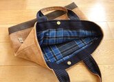内袋は格子の古い木綿から。こちらもポケットがあります。
