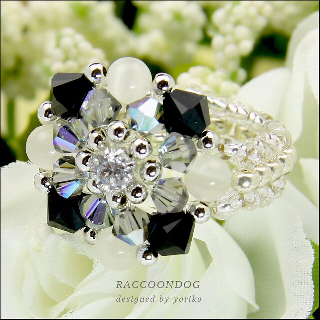 ビーズ,リング,コスチュームジュエリー,ビーズアクセサリー,ビーズアクセ,スワロフスキー,ビーズリング,ジルコニア,アクセサリー,キャツアイ,モノトーン,雪,花火