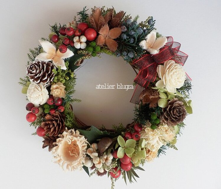 しっとりした大人色のリースで、とても素敵です。 毎回、素敵な作品をありがとうございます。