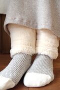 内側も外側もオーガニックコットンファーで温かく、スカートやパンツで足首が寒い時にレギンスやソックスの上に着けておくととても温かです。