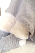 コットンファーのニット生地は多少伸縮しますので、程よいフィット感。足先に向く方が少し細くなるよう作りました。両足用の2つセットになります。
